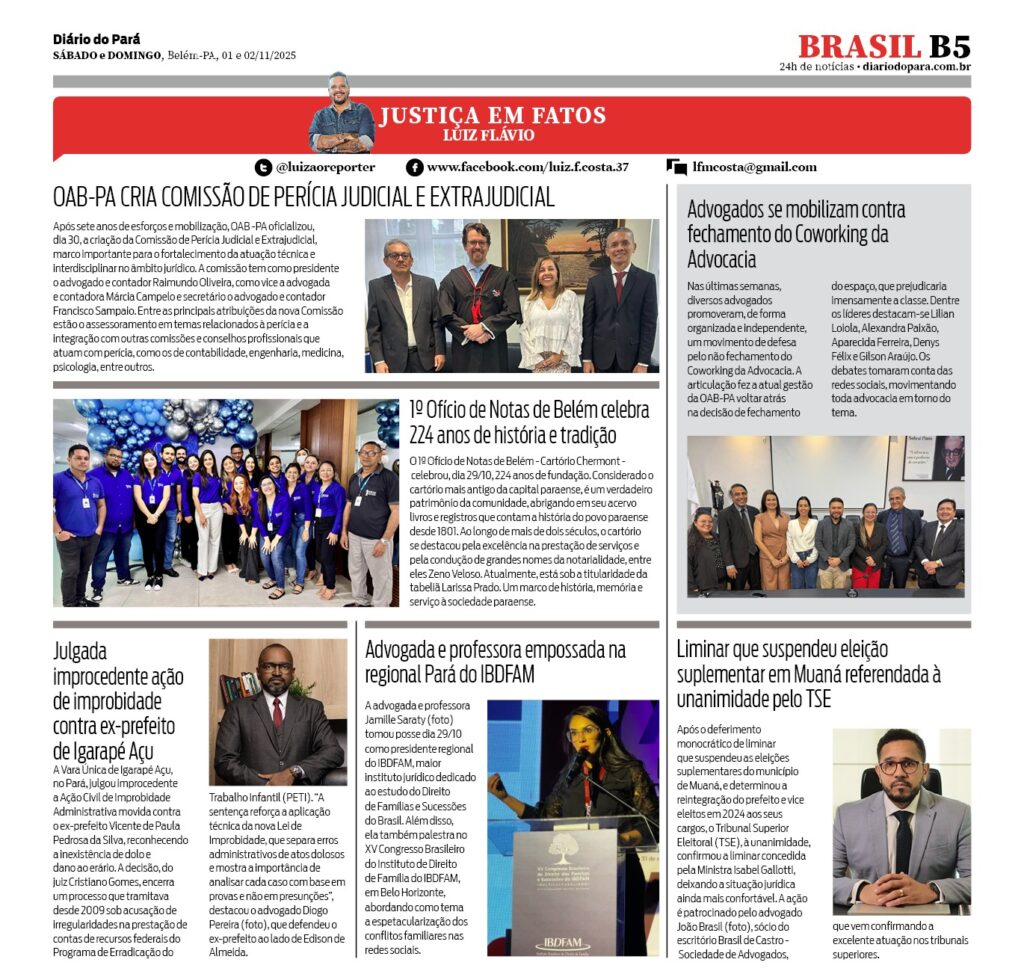 Larissa Prado Santana – Tabeliã do 1º Ofício de Notas de Belém/PA. Doutoranda em Direito Público. Mestre em Direito Público e em Administração Pública. Especialista em Direito Notarial e Registral. Autora de livros, artigos e palestrante. Diretora na ANOREG/PA e no IBDFAM/PA.